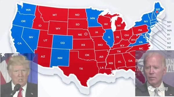 蓝红是美国政治颜色,蓝色被认为支持民主党,红色被认为支持共和党。