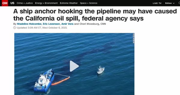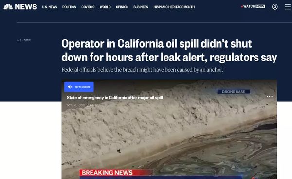 其次,有美国媒体还进一步调查发现,在最初输油管道被破坏后,负责运营这处输油管道的单位并没有及时处置这一问题,哪怕当时管道系统已经因为低压问题报了警。直到过了3个多小时,相关单位才采取行动关闭了管道系统,可此时大量的原油早已被泄漏到了海洋和海岸上。