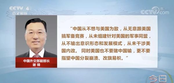 对此,中方表示,美全政府、全社会动员、全方位遏制中国,似乎只要遏制住中国的发展,美内外难题就能迎刃而解,美国将重新变得伟大,美国治下的霸权就可以延续。我们敦促美方改变当前这种极其错误的思维和极其危险的对华政策。