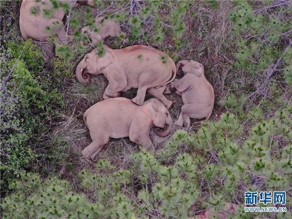 云南野象“旅行团”正在休息 图源:新华网