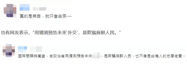 也有网友表示,“用猜测预告未来‘外交’,是欺骗麻醉人民。”