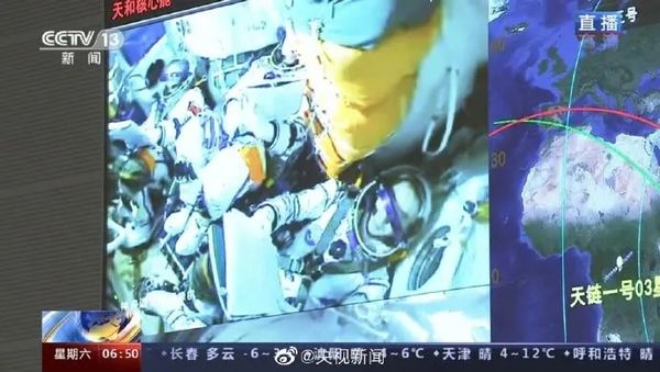 据中国载人航天工程办公室消息,神舟十三号载人飞船入轨后顺利完成入轨状态设置,于北京时间2021年10月16日6时56分,采用自主快速交会对接模式成功对接于天和核心舱径向端口,与此前已对接的天舟二号、天舟三号货运飞船一起构成四舱(船)组合体,整个交会对接过程历时约6.5小时。按任务实施计划,3名航天员随后将从神舟十三号载人飞船进入天和核心舱。
