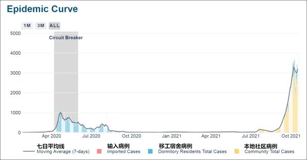 伴随着限制措施的放宽,8月底,新加坡疫情果然开始迅速反弹。10月9日,新加坡单日确诊病例突破3700例,并且是连续5天新增破3000。短暂回落后,15日-17日再次连续突破3000例,10月19日达到3994例,刷新单日最高确诊纪录。