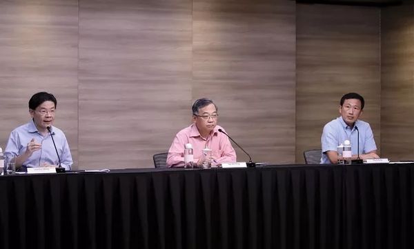 左起:新加坡财政部长黄循财、贸工部长颜金勇、卫生部长王乙康 图源:新加坡通讯及新闻部