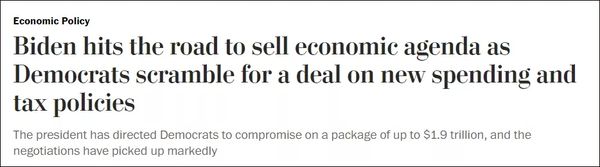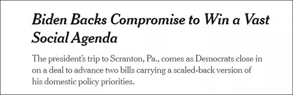 《纽约时报》称,大多数情况下,拜登一直充当妥协者的角色,这一次也不例外。他19日曾建议,价值高达3.5万亿美元的预算决议可能会缩水50%,降至1.75万亿美元。