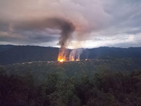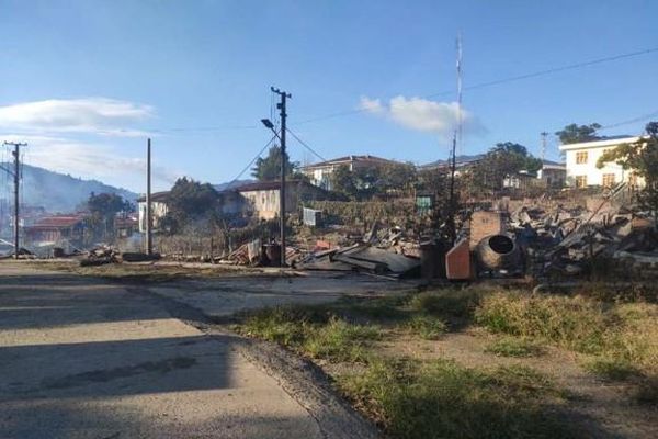 缅甸钦邦丹朗镇因武装冲突发生火灾 70多栋房屋被烧毁