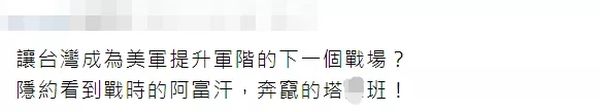 有网友称,“让台湾成为美军提升军阶的下一个战场?隐约看到战时的阿富汗。”↓