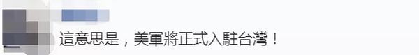 有网友认为:这意思是,美军将正式入驻台湾!↓