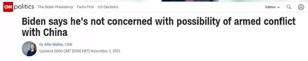 CNN:拜登表示,他并不担心与中国发生武装冲突的可能性