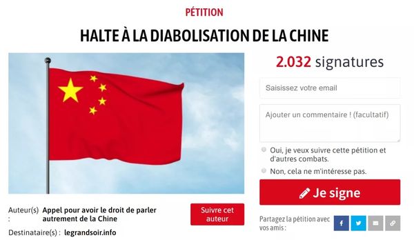 法国“我的观点”请愿网站上有关“停止妖魔化中国”签名活动的截图。
