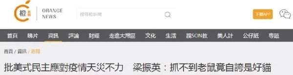 梁振英最后说,美国的“民主”无论是应付持续的疫情,或处理突发的天灾,都显得苍白乏力。“抓不到老鼠的猫竟然自夸是全球第一好猫”。