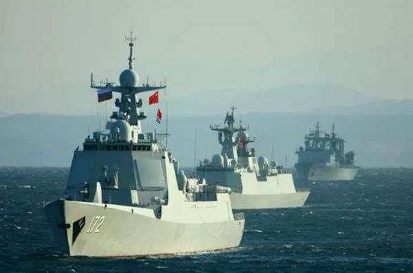 当地时间10月15日,中俄“海上联合-2021”演习,中国海军参演舰艇驶向演练海域。