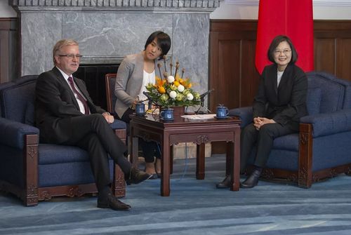 ▎蔡英文与“欧洲议会-台湾友好小组”成员迈克尔·加勒