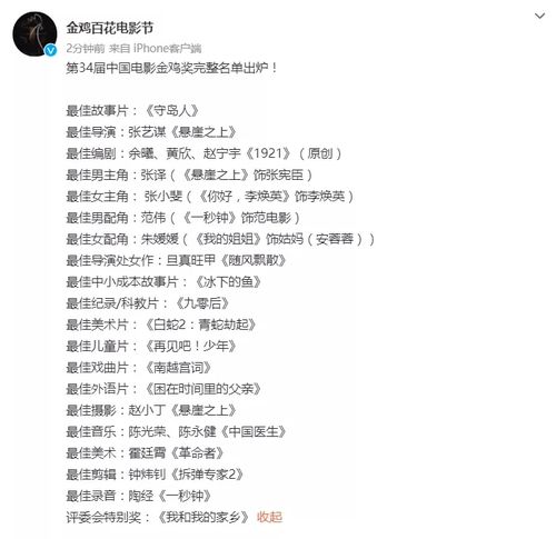 第34届中国电影金鸡奖完整名单↓
