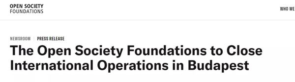 2018年5月,索罗斯开放社会基金会官网公告,关闭在布达佩斯的分支机构。