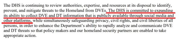 而在打击犯罪方面,今年5月由美国联邦调查局和国土安全部提交给美国国会的关于打击美国“本土暴力极端分子”和“本土恐怖分子”的文件中,美国国土安全部也表示该机构会继续“拓展”在社交网络等平台上“搜集”“本土暴力极端分子”和“本土恐怖分子”的信息。