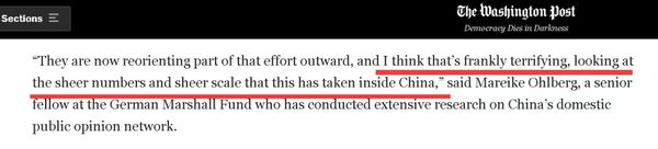 但西方媒体并不满足于此。昨天,美国《华盛顿邮报》的记者Cate Cadell又发布了一篇同一路数的文章,炒作说中国政府正在境外社交媒体上“大规模收割”外国人的隐私数据,“干涉”别国民意并“恐吓”敢对中国说不的“记者、学者和活动人士”。