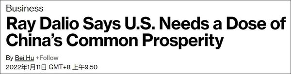 据彭博社1月11日报道,全球最大对冲基金桥水基金的创始人雷·达里奥(Ray Dalio)说,美国需要一剂中国的“共同富裕药”。他在敦促美国等国缩小贫富差距的同时,赞扬了中国推动共同富裕的努力。