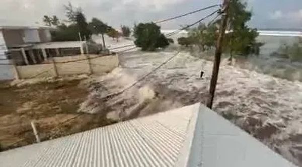随着一声巨响,汤加火山从海底喷出的气体、烟雾和灰烬像核爆蘑菇云一样从蓝色的太平洋海域升起,直冲天际。汤加首都努库阿洛法距离火山约65公里,居民们听到巨响后,一边尖叫一边四处逃生。火山喷发引发海啸,袭击了汤加沿海。社交媒体上的视频显示,海水涌入一些房屋,人们纷纷向高地逃生。汤加气象局表示,汤加全境面临海啸、暴雨、洪水和强风的危险。有汤加民众形容称,“我们的家在摇动,之后海浪来了。我的弟弟还以为附近发生炸弹爆炸”。