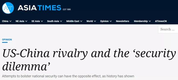 香港“亚洲时报”在线1月15日文章,原题:美中竞争和“安全困境” 副题:试图加强本国安全可能造成适得其反的结果
