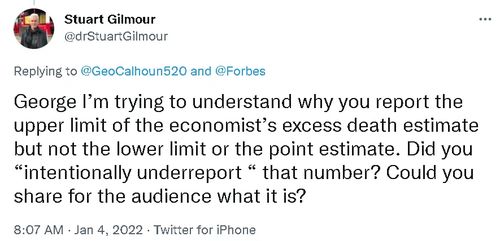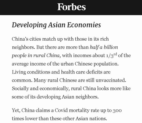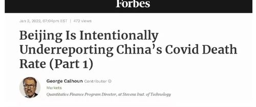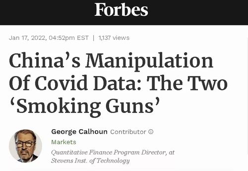 此前,他先是于1月2日在美国福布斯网站上发表了他的第一篇文章,引用英国《经济学人》杂志推出的一个很不严谨、就连不少西方学者都认为设计有问题的“大数据模型”,用一种近乎是在“刻舟求剑”的方式,用美国新冠死亡人数“模拟”出了中国“应有”的新冠死亡人数,然后以此宣称中国的实际死亡人数为170万人,而不是中国官方通报的不到5000人的死亡人数。