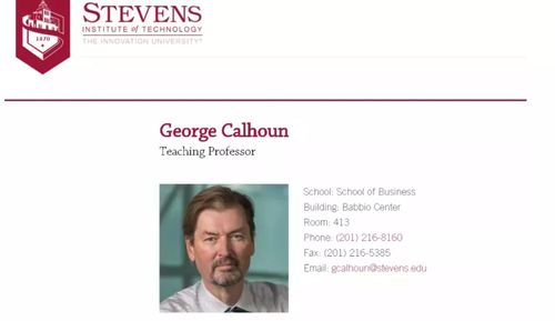 这个美国教授名叫George Calhoun,是美国斯蒂文斯理工学院(Stevens Institute of Technology)的一名授课教授,其本职专业是无线通讯科技和资本市场融资。
