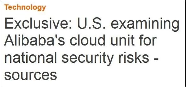 路透社18日独家报道称,美国正以“国家安全”为由审查阿里云