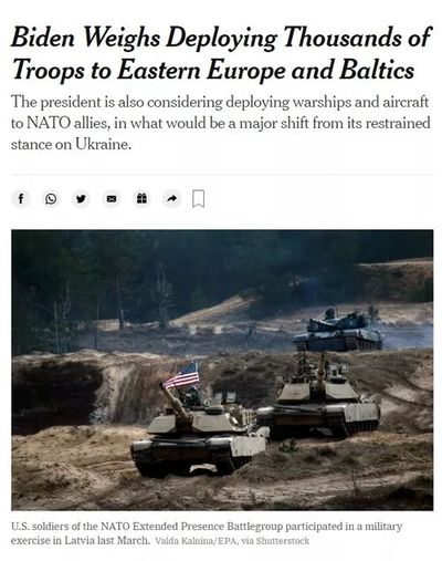 《纽约时报》23日引述匿名美国官员的话披露称,五角大楼官员在会上向拜登提供了几个选项,以便让美国的军事资产更加靠近“普京的家门口”。
