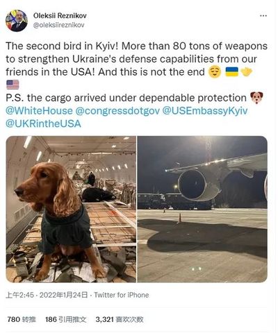 紧接着第二天,也就是当地时间23日,乌克兰国防部长列兹尼科夫称,该国已获得美国提供的第二批武器。