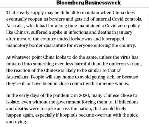 因此,这位彭博社记者在文章最后写道,“中国坚持清零政策越久,对世界其他地方才越有好处。”