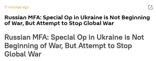 俄罗斯卫星网刚刚消息,俄罗斯外交部谈及在乌克兰东部地区的特别军事行动时称,这不是战争的开始,而是在试图阻止全球战争。