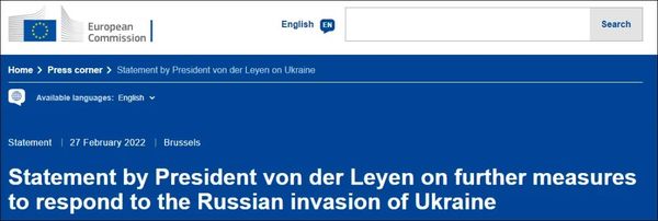 冯德莱恩和博雷利还表示,该提案还将巩固欧盟此前宣布的一揽子措施,后者旨在通过对俄罗斯实施更多金融制裁,比如将“选定的俄罗斯银行”从环球银行金融电信协会(SWIFT)国际结算系统中移除,来加强对乌克兰的国际支持。