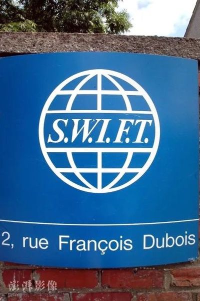 资料图:位于比利时布鲁塞尔总部的SWIFT徽标 图自澎湃影像
