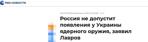 据俄新社3月1日报道,俄罗斯外交部长拉夫罗夫在一场裁军谈判会议上称,俄罗斯采取一切措施,防止乌克兰出现核武器。