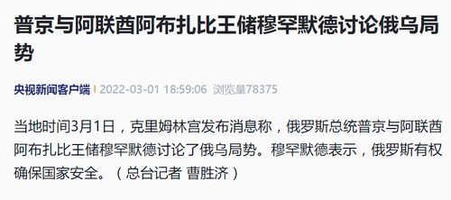 普京与阿联酋阿布扎比王储穆罕默德讨论俄乌局势