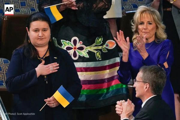 而美国第一夫人吉尔·拜登今天请到国情咨文现场的座上宾,则包括了乌克兰驻美大使马尔卡洛娃。(其他宾客包括了Facebook吹哨人Frances haugen, 英特尔CEO,13岁的抗击糖尿病患者,俄亥俄州的护士等等。)