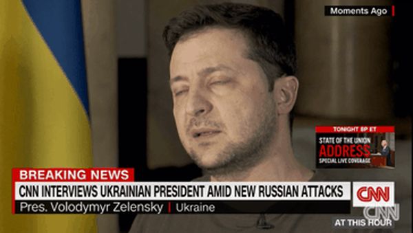 泽连斯基今天也是非常配合,冒着风险邀请CNN等媒体来到他躲藏的地下办公地点接受采访。