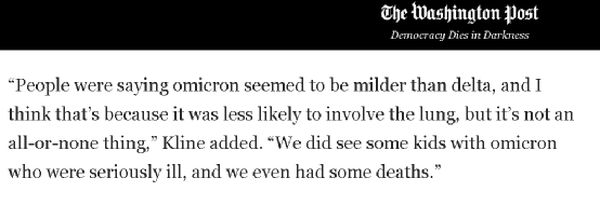 不过,美国《华盛顿邮报》近日一篇同样关注奥密克戎毒株对儿童影响的报道却指出,来自美国疾控中心的研究发现,奥密克戎毒株并没有显著增加儿童的病死率。