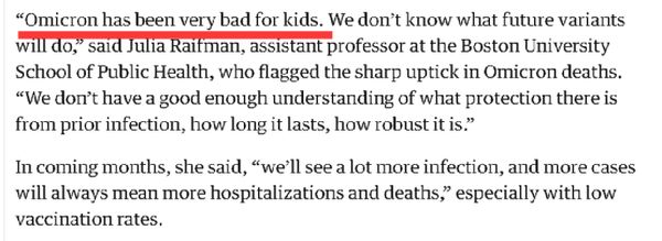一家美国儿童医院的专家在接受该报采访时亦表示,医院里因为奥密克戎毒株而住院的儿童出现了激增,而且这种情况是他们在前几个月时没有预料到的。