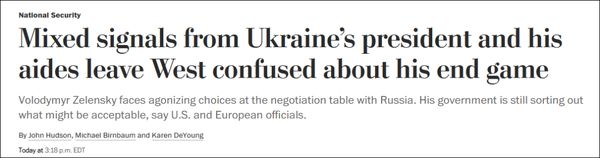 《华盛顿邮报》:乌总统及其助手发出的混乱信号,让西方对他们的最终目标感到困惑