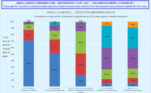 3月20日,香港特区政府发布的新闻公报中显示,第五波疫情的首5435宗死亡个案中,这其中80岁以上者死亡病例有3837例,占所有死亡病例的7成多。
