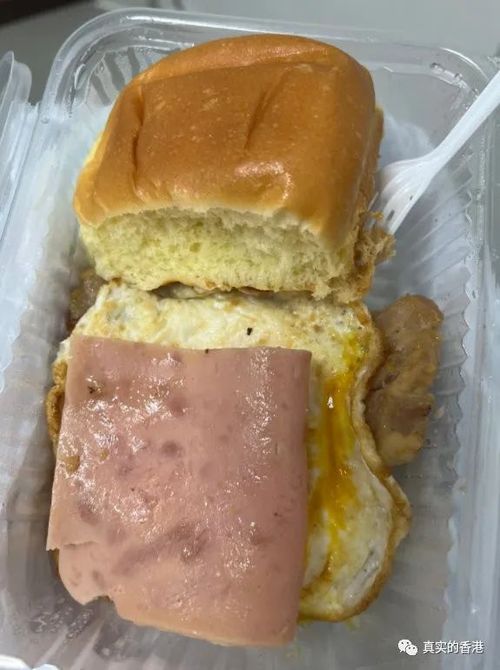 这是另外一天的早餐,鸡蛋配通心粉,中式莲蓉包还有培根跟鸡肉,发帖人形容,过得去了!没怨言,而这位仁兄,是一位“连登仔”。