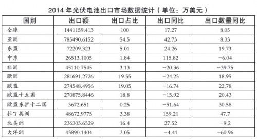 2014年,即度电补贴政策执行的一年后,中国光伏从业企业们不但没有大面积的倒闭,反而还顶着前期资金压力大和欧盟双反调查的双重压力下,交出全球出口逆势增长17%的傲人成绩。其中,美国市场同比增长29.3%,日本市场同比增长61.64%,中东市场同比增长115.82%。