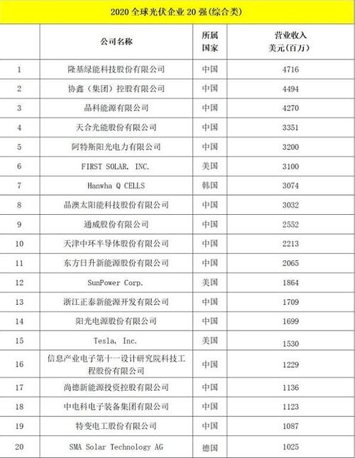 整体来看,2020年按营收计算的全球光伏企业20强,德国一家,美国三家,韩国一家,剩下15家全是中国的,且包揽前五。