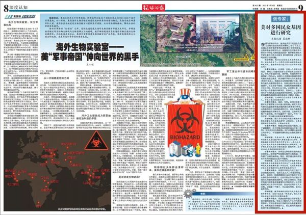 环球时报:乌克兰和格鲁吉亚等俄罗斯周边国家的美国生物实验室是否参与了上述基因特征研究或生物数据收集?如果没有,美国生物实验室在这些国家进行的主要研究领域是什么?