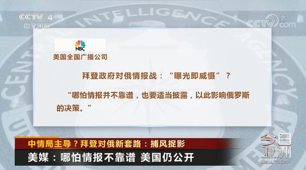 美媒披露的所谓“最新情报”无疑是美国对俄情报战的最新案例——美国全国广播公司NBC披露,拜登政府对俄情报战采用了新的思路,那就是:哪怕情报并不靠谱,也要适当披露,以此影响俄罗斯的决策。美媒将这一做法形容为“曝光即威慑”。