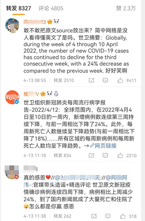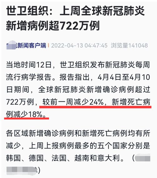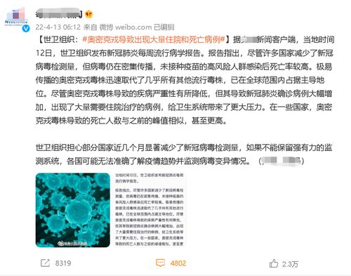 在北京时间4月13日早上6时12分,某新闻媒体在其微博账号上发布了一则消息,内容是世卫组织在4月12日发布了新冠肺炎每周流行病学的报告,其中指出奥密克戎毒株导致了大量的住院和死亡病例。