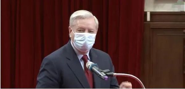 美联邦参议员格雷厄姆15日在台“总统府”与蔡英文会面时致辞。图自台媒