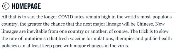 这是因为,病毒确实还在继续变异,而且其变异方向科学家并不确定——不论《每日野兽》对中国的担忧及其立论是否合理,这一情况是一个客观事实。