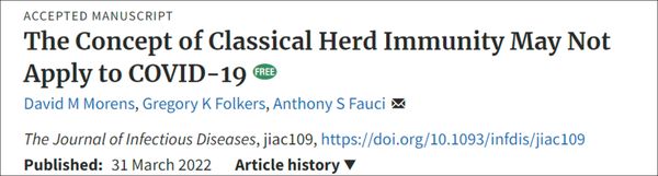 今年3月31日,一篇题为《传统群体免疫概念可能不适用于新冠病毒》的论文发表在牛津大学出版社的医学期刊《传染病杂志》上,福奇为作者之一。